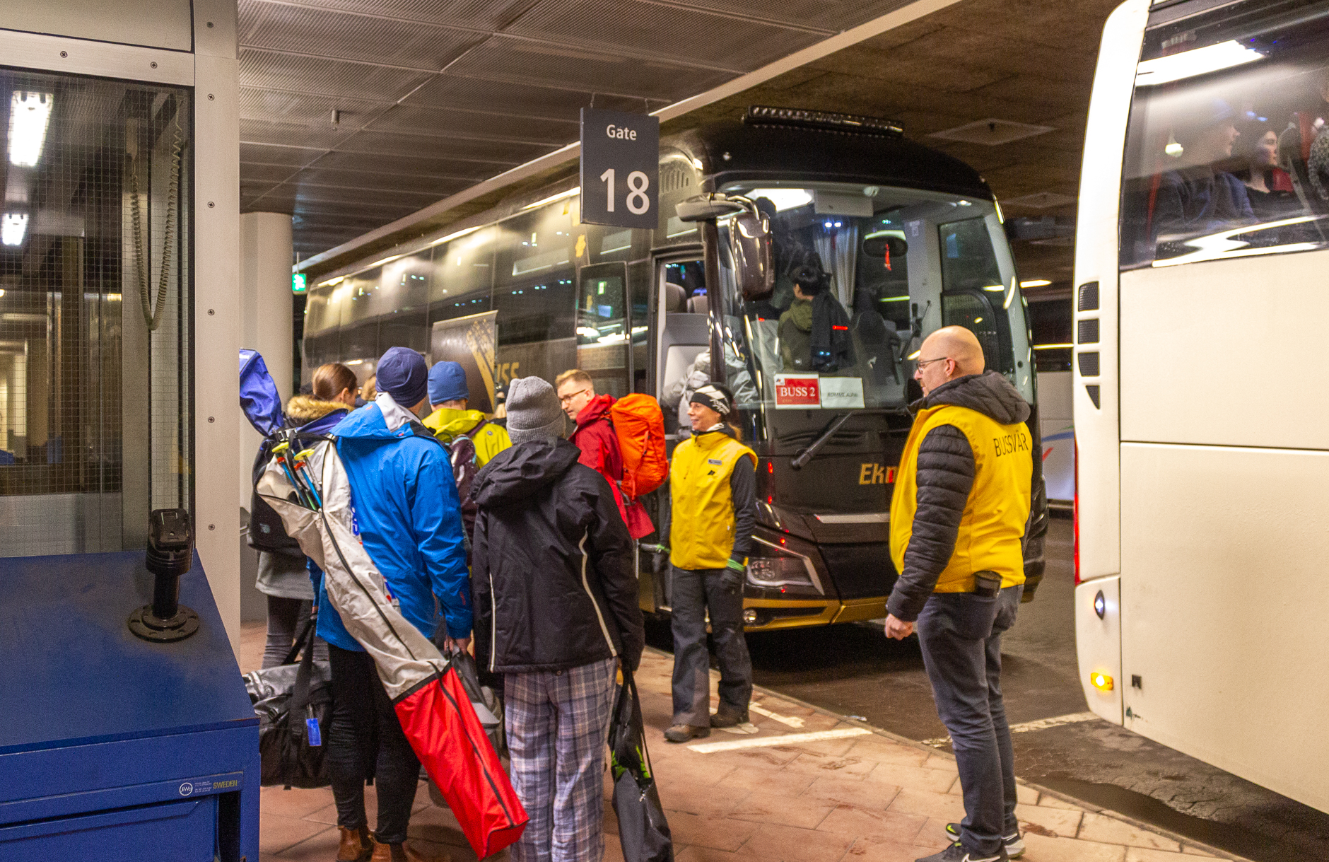 The bus from Södertälje stops at the City Terminal in Stockholm before the journey continues towards Dalarna. At Cityterminalen, you only follow the information screens' (says ROMME ALPIN) and which gate the bus departs from. Here we also have a bus host from Romme Alpin who helps with various practical questions. After the day on the slopes, you are back at the City Terminal at 17.30 / 18.30 depending on Romme Alpine's closing time. Please, respect the departure time. The bus will not wait.